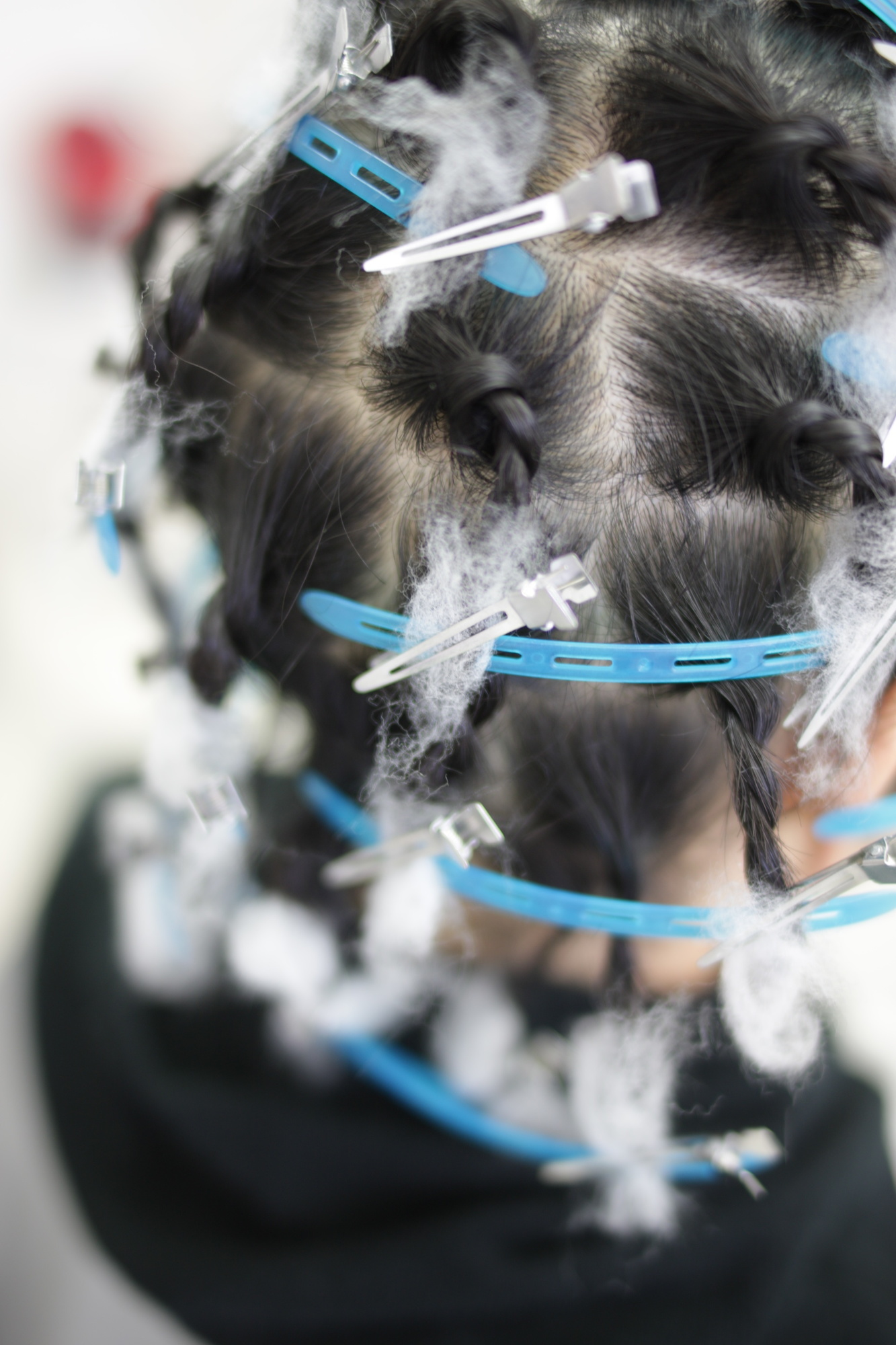 髪の太さや長さ、毛量を見ながら、ねじりの強さや巻き方を細かく調整します。